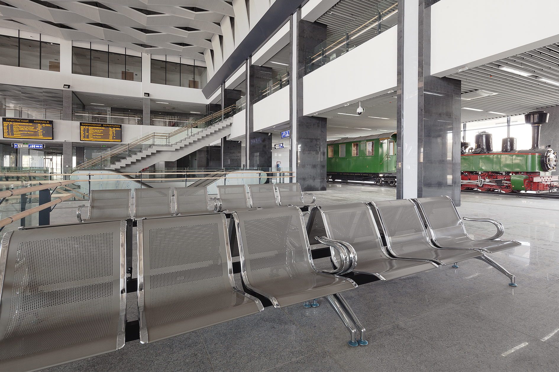 With the implementation of the large-scale project for rehabilitation of the Central Station Sofia complex, a complete reconstruction of the existing reception building and its adjacent terrains was carried out. The project improved the functional distribution of the premises, the commercial and operational potential of the building.